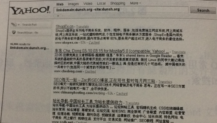 最后一個例子,通過雅虎搜索這個指令:linkdomanin:dunsh.org-linkdomain:seozac.com