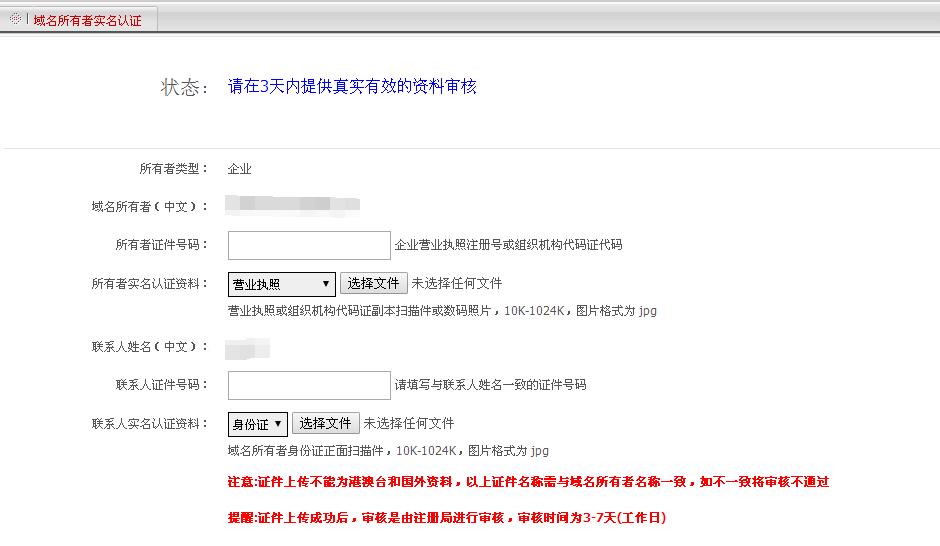 按照工信部2017年全面域名實名認證的要求,為了不影響您的域名正常使用,已注冊成功的域名請于5天內完成實名認證。已注冊成功的域名請盡快在指定的實際完成實名認證,以免域名被注冊局禁止解析導致域名不能正常使用。