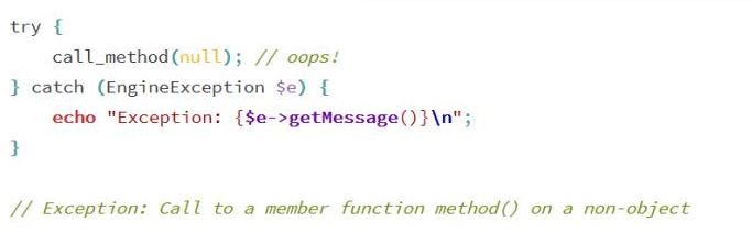 \EngineException 對象沒有繼承\Exception,這保證了代碼的向后兼容和在錯誤處理時的兩種不同類型的異常處理:傳統的和新的引擎的異常處理.