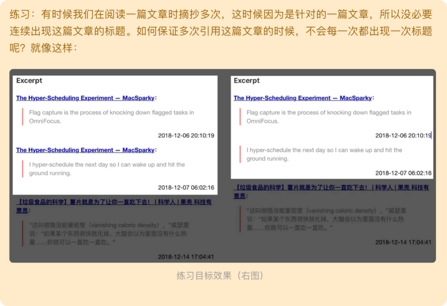 在快捷指令教程的 16 期 中 Hum 就介紹了一個網(wǎng)頁摘抄的快捷指令,可以把所選內(nèi)容帶上樣式摘抄到 Evernote 中1。末了文章還留個一個題目,沒成想這個「避免重復(fù)出現(xiàn)標(biāo)題」的小要求難倒了不少教程讀者。