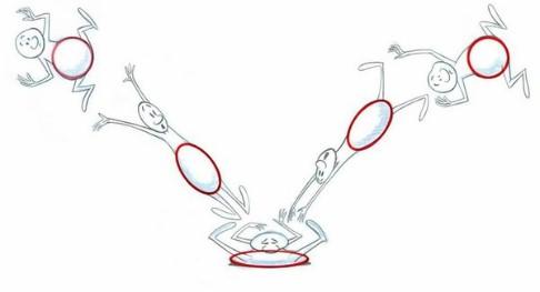 擠壓和拉伸是指物體的形變。例如拋出一個皮球,它在接觸地面時發(fā)生擠壓,在彈起時發(fā)生了拉伸。迪士尼動畫經(jīng)常出現(xiàn)這一手法,如人物的落地/起跳,結合夸張的手法,更加有力生動。在人機界面中,界面上的內容或控件相對嚴謹和機械,生命力較弱,適當?shù)臄D壓和拉伸可增加趣味性和生動性。