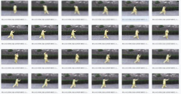 動畫是一系列連續(xù)圖像組成的動態(tài)影像,例如常見的1s/24幀,指的是1s內顯示24張連續(xù)的圖像。連貫動作法是把每一幀都抓取出來,關鍵動作法是選取一些關鍵幀,關鍵幀與關鍵幀之間通過補間幀來完成。如下圖“打太極拳”的動作,上面的圖是把太極拳的每一個動態(tài)抓取出來,下面的圖展現(xiàn)的是太極拳的關鍵動作。人機界面中的動效,常采用的是關鍵動作法。