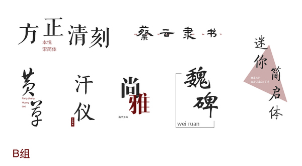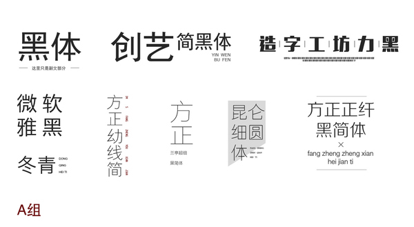 A組的字體組合都被緊密地排列在一個無形的矩形里,在視覺上形成一個面。