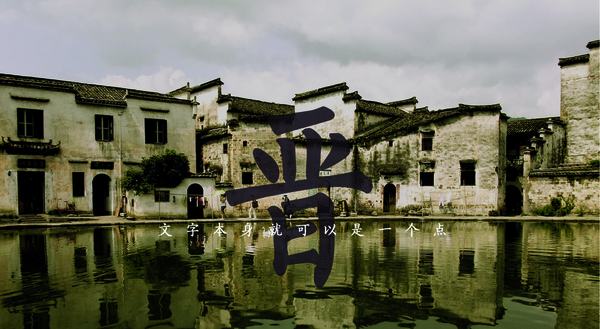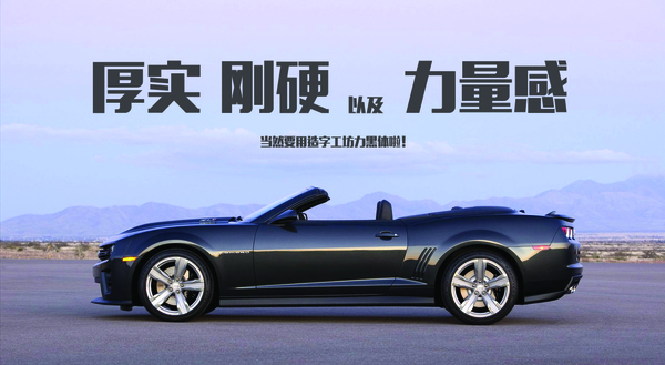 第二個例子,是一個“圖片突出文字”的例子。雖然這張照片的色彩屬性有“強烈”和“突出”,但色彩卻是“單調(diào)”的,我的做法是先加上兩個粗筆畫的毛筆字(粗古),突出一個主色。然后再放一段酡紅色的英文,是色組變得豐富,同時配合“粗古”,讓色彩的情緒表達地更加明顯。