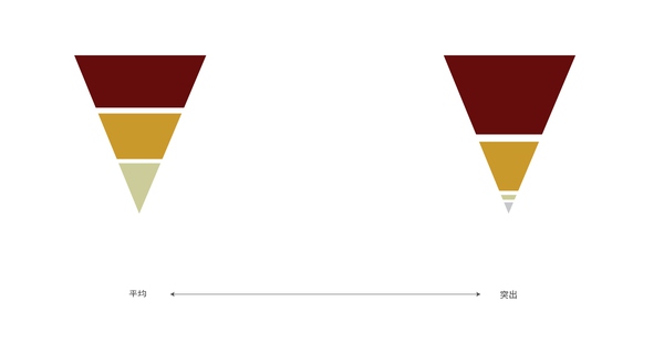 上圖是一個色彩組合的模型,我設計成一個倒三角的形狀。我稍微簡單解釋一下:倒三角形最上面的一塊是主色,主色是這張照片里最突出的色彩,通常是照片里的面積大。往下一個是副色,副色比主色的突出效果要較弱一些。再往下則是一些輔助色以及一些面積非常小的點綴色等等... ...