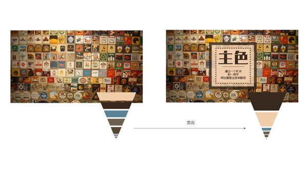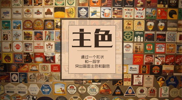 最后的例子,是關于形狀的顏色和透明度設置的一個示范。由于這張照片的色組屬性太過平均,所以我用一個形狀壓住一個副色調(diào),然后用“粗古”字體壓住主色調(diào),將這個色組的“平均”屬性轉為“突出”。這個例子是想表達:形狀圖形的色調(diào)選擇,關鍵在于你想怎么改變色組的屬性,而半透明的設置,可以改變色組的“豐富”屬性。