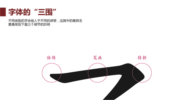 篇幅已經(jīng)很長了,直接上結論吧(累)。總結了所有的教程和優(yōu)秀設計作品,我認為區(qū)別單個字體之間最重要的三個特征:見下圖