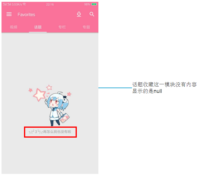 這種情況比較常見,用戶在某一模塊的數據是空的,比如說我的B站移動端,在收藏的話題這一塊,我沒有收藏任何話題,那么這一塊的內容,手機向服務器請求數據,返回來的就會是一個空值。