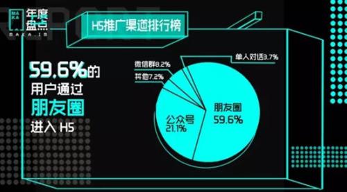 如今的H5可以稱為互聯網廣告的主力軍,用戶對H5的熱度仍呈上升趨勢。不可忽視的是,微信已成為社交網絡的主戰場,過半用戶則是通過微信朋友圈進入H5,得朋友圈者得天下。