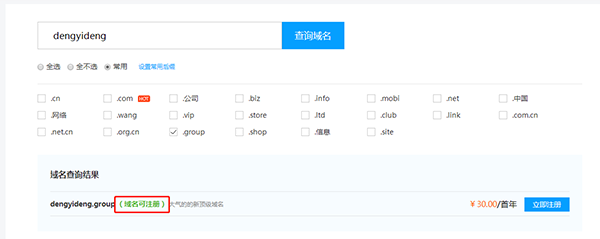 3、查詢您想注冊的域名是否可以注冊