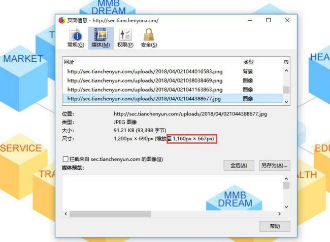 通過(guò)以上三種瀏覽器查看到圖片的尺寸后,設(shè)計(jì)相同尺寸的圖片上傳網(wǎng)站即可,這樣不會(huì)導(dǎo)致圖片變形。其他瀏覽器也具備查看圖片尺寸的功能,大家可以研究下。
