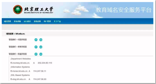 隨著智慧校園信息化建設的高速發展,北京理工大學的權威域名服務范圍越來越廣,運行復雜度越來越高。目前學校已開通4個權威域名,300余個主機域名,權威域名服務是學校教育信息化工作的重要基礎設施。