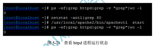 這個操作首先查看了服務器上的httpd進程,發現并沒有httpd進程運行,同時httpd對應的端口80也并無啟動,于是重新啟動Apahce,在啟動Apache的過程中并沒有報錯,啟動完成后發現仍然沒有httpd進程運行,由此看來,應該是Apache內容出現了問題。
