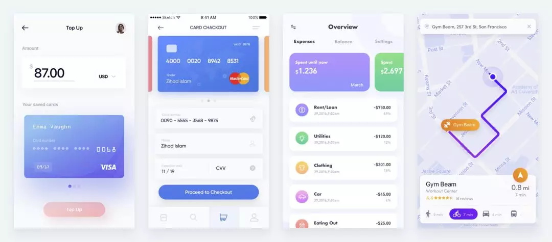 通過前面講解的知識點,上方展示案例中應(yīng)用的陰影方式相信你們已經(jīng)可以看出端倪了,如果使用基礎(chǔ)的陰影設(shè)置去創(chuàng)建展示的陰影,就會發(fā)現(xiàn)效果遠遠不如案例的高級,自然也難以帶給別人良好的視覺體驗。最后,在項目中,想要將設(shè)計出來的陰影交付給開發(fā),真正落地實現(xiàn)出來,無論安卓或是 iOS ,陰影的渲染和設(shè)計軟件的參數(shù)是不一致的,這就需要大家自己鉆研了。