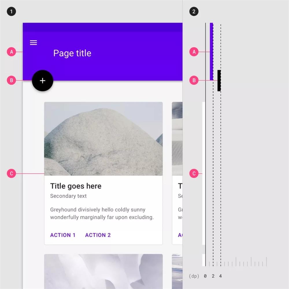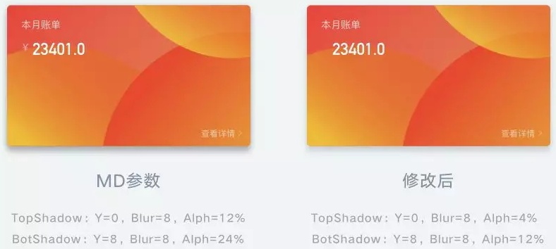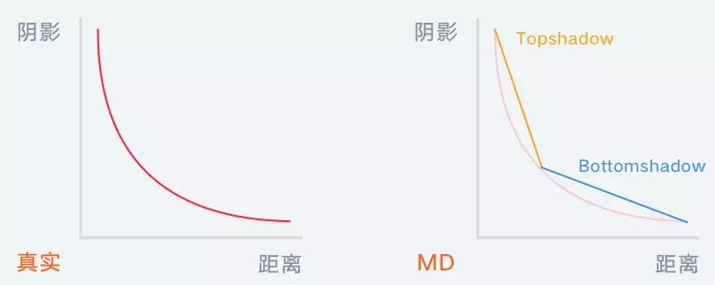 而 Sketch、XD 這些軟件都不具備這樣的功能,且手機系統(tǒng)的投影渲染機制也是線性的,所以谷歌就通過使用 TopShadow、BottomShadow 疊加的方式,去模擬真實的投影效果,讓它們看起來更和諧自然,這就是多層投影的奧秘。