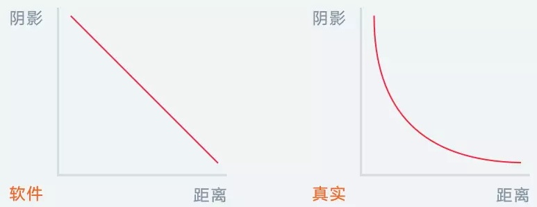 可以看見,元素疊加了多層的投影,這是違反新手對于投影定義的直覺的。原因在與,一般軟件中定義的投影,其深淺與元素的距離是線性等比的,而現(xiàn)實世界中,深淺與距離是非線性的函數(shù)關(guān)系。
