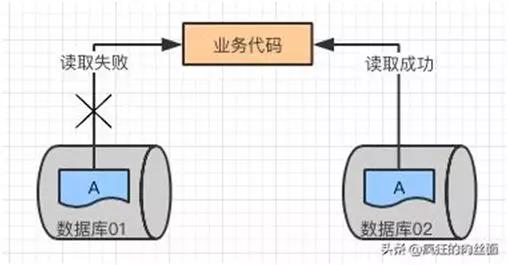 假設數據庫 01 和 02 同時存放記錄 A,由于數據庫 01 掛掉了,業務代碼不能從中獲取數據。
