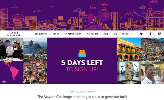 The Mayors Challenge的設計充分運用了material design的概念,卻沒有做出Google產品的感覺。顏色鮮艷而明亮,同時卡片在某種程度上卻非常簡單和“不明確”。圖標、文字和鏈接中都有鮮艷色彩,所有這些暗示,都在引導用戶在網站上進行操作。