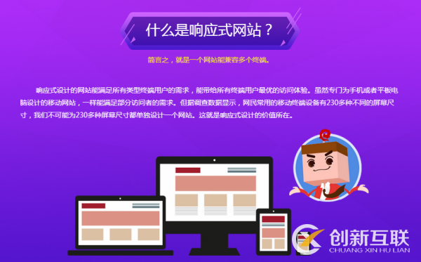 移動互聯網時代,用戶們不再單純依賴電腦進入網絡,此時用戶可以通過不同的設備進入網絡中,但是這些設備又有著特定的屏幕尺寸、分辨率等,在這樣的情況下,傳統(tǒng)的電腦網站不能滿足用戶的需求,電腦網站在不同設備上打開會出現各種個樣的問題,無形中導致大量的潛在用戶流失,所以這里的響應式網站建設公司創(chuàng)新互聯很有必要為大家介紹,建設響應式網站有什么優(yōu)勢,能為企業(yè)帶來什么效益,企業(yè)又該如何制作一個高質量的響應式網站。