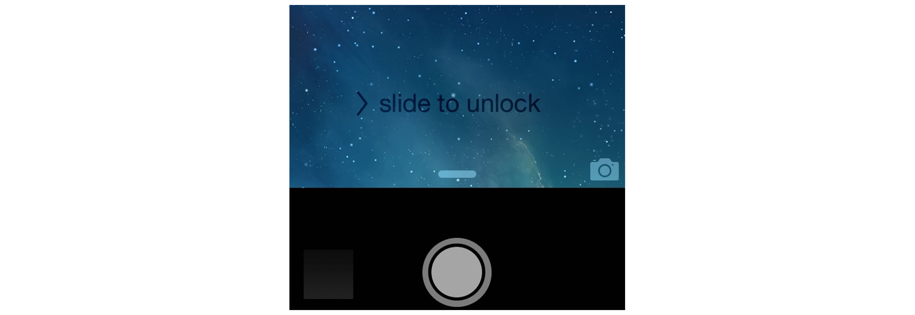 第三種方式是著重推薦的,也是我認為最有效的一種,借助可供性設計的原理來呈現手勢交互。為了呈現手勢交互的可供性,設計師應該通過設計呈現出“用戶能怎么操作”,iOS 的鎖屏相機就是一個典型案例,當用戶在鎖屏狀態下點擊右下角的相機按鈕的時候,屏幕會向上彈跳,展示它是可向上滑動打開的(這一功能的“能指”)。
