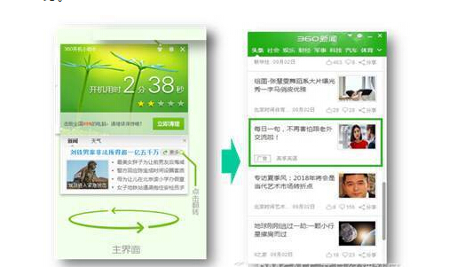 360以安全衛士等工具類產品起家,面對信息流化的大趨勢,360在工具類產品的信息流化上也提出了新的思路:場景推薦。擁有5.14億用戶的360安全衛士的開機小助手,一直是360的王牌產品。它自帶一項用于顯示開機時間并按照提示來優化電腦開機速度的提示功能。分析發現,用戶開機之后,一般會隨意看看時事新聞,為了適應用戶的需求,小助手變身成為新聞導航神器與360新聞信息流頁面進行連接互動,悉心陪伴喜歡開機看新聞的用戶,為用戶提供高效、便捷、個性化的內容服務。