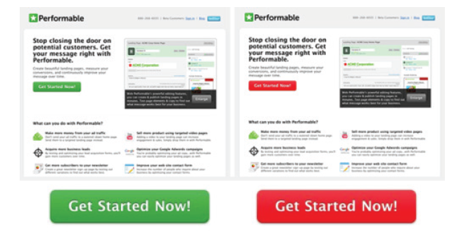 有大量的A/B測試顯示了CTA按鈕(CallToAction)的顏色改變會對轉化帶來極大的影響。HubSpot在以前仍叫做Performable的時候分享了這個著名的測試: