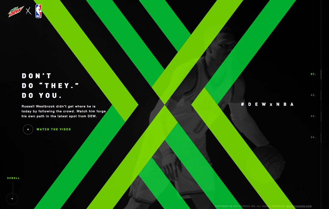 有些品牌在設(shè)計LOGO的時候就采用了霓虹色,在進行相應(yīng)的網(wǎng)頁和廣告設(shè)計的時候,就不應(yīng)該避開這一元素。就像 Mountain Dew 一樣,充分利用霓虹色的特點,大膽地投入到視覺設(shè)計中去。由于絕大多數(shù)的網(wǎng)頁不會這樣去用色,擁有霓虹色的網(wǎng)頁無疑就可以通過這種差異,脫穎而出。