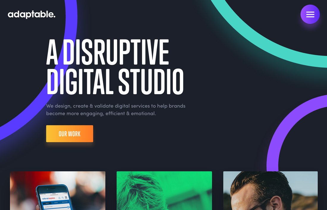 但是,真正的霓虹色的元素,很難被鏡頭捕捉到,這也使得許多包含霓虹燈的圖片,并不夠優(yōu)質(zhì)。如果要使用,盡量使用簡單、簡約、對比強烈、空間感十足的帶有霓虹色的圖片,就像上面的Yoke 網(wǎng)站一樣。