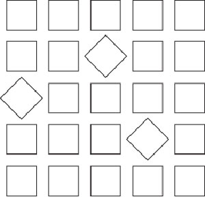 定向可以用于組的相似性,通過將某些圖形旋轉45度,就可以形成一個單獨的分組。同周圍形狀比較,他們幾乎似乎是在一個相同的方向移動。這實際上涉及到共同命運的格式塔原則。這是一個迷人的原則,經常發生在你周圍。
