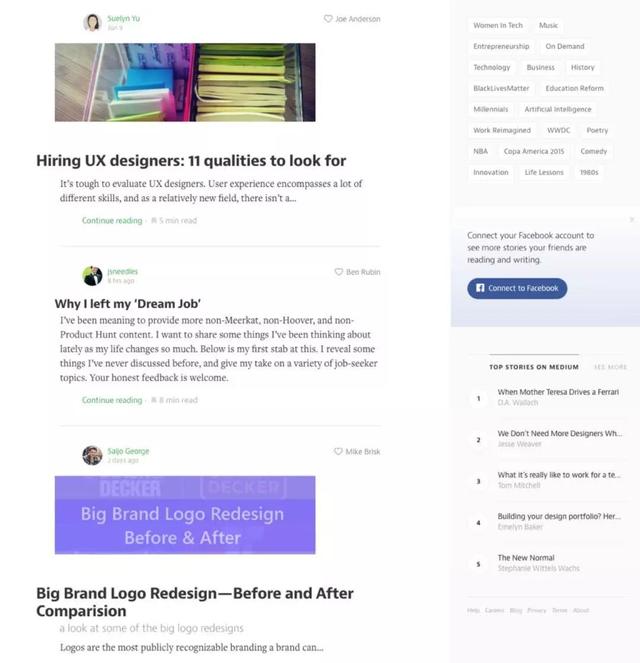 這是我從Medium上找到的網(wǎng)頁(yè)設(shè)計(jì)布局——你覺(jué)得怎樣?(提示: 注意對(duì)邊邊緣的對(duì)齊情況。)