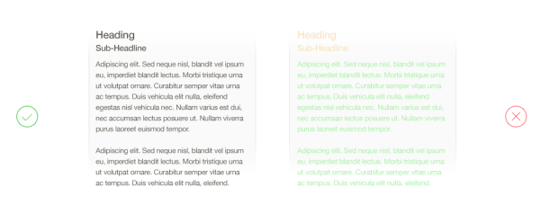 如果可以的話,嘗試使用#333333 RGB(51, 51, 51),而不是黑色,作為文字顏色。黑白對比晃眼睛,讓人更難集中注意力。