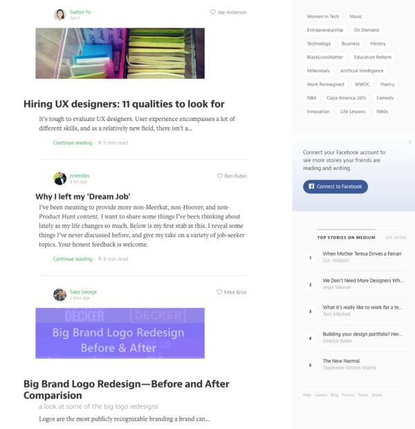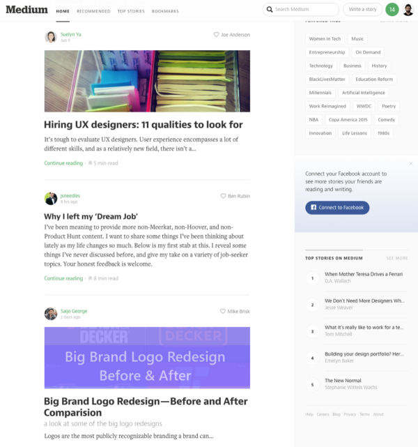 下面是一個Medium的頁面,你覺得看起來如何?是不是有哪里不對?提示:注意左側的對齊情況,看起來怎么樣?
