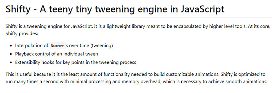 Shifty 是一款性能優異,速度夠快且足夠靈活的補間動畫引擎,它是公認的 GreenSock 替代方案。