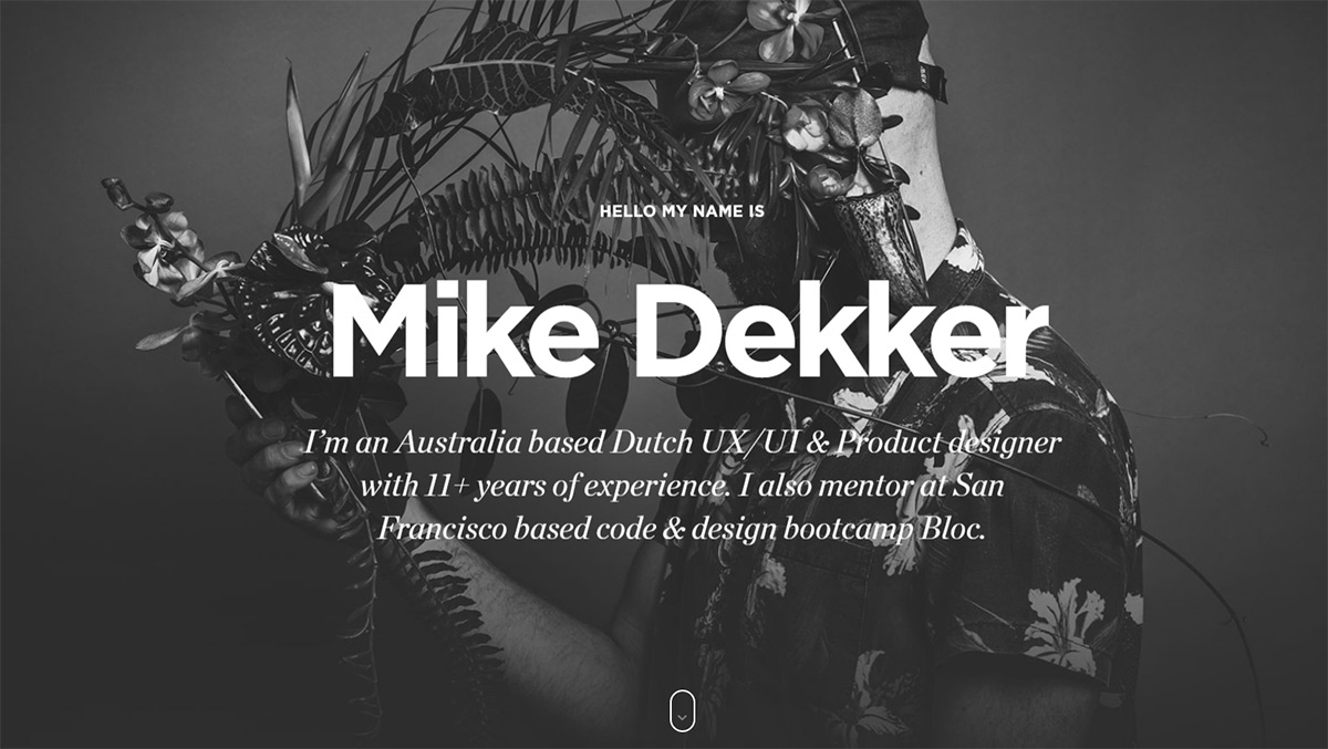 在首頁剛剛加載出來的時候開始,你就會因為這些內(nèi)容而很快了解 Mike,決定是否要深入了解他的作品。當然,想要達到這樣的效果,設計師本身是需要比較扎實的文案功底的,好的文案會讓內(nèi)容和信息的呈現(xiàn)自然而順暢。