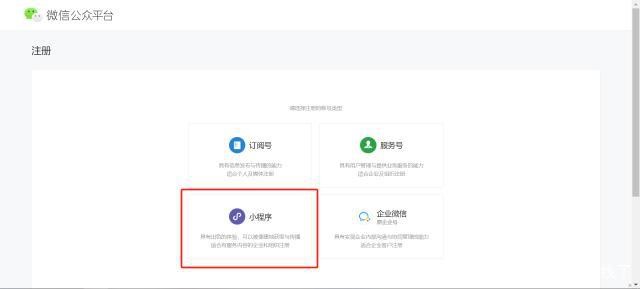 1.在微信公眾平臺上,注冊一個小程序賬號。根據注冊指引填寫相應信息,提交相應的資料。
