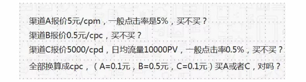 在上面這個例子中,流量運營的同學都會比較熟悉,不同的三個渠道有三種不同的報價方式。A跟C價格都還可以,那是不是就直接買A和C就可以?不一定,因為A跟C它每一個點擊,它所換來的一個轉化效果,其實可能是不一樣的。比如說C可能每5個點擊,有一個用戶的進行轉化。那么他給你帶來的這個收入是一個固定的值。如果A有另外一個數據的話,它帶來的收入值,可能又是不一樣的。所以你只有監測到它的轉化和渠道的來源,才能做出最精確的判斷。