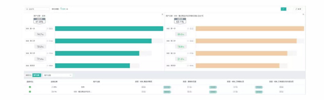 分群完了之后,我們把分群應用到我之前建好的轉化漏斗上,可以得到一個對比的數據。