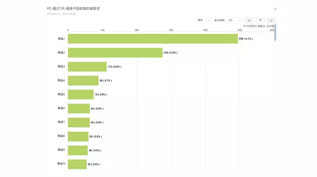我們把這個搜索詞的出現的頻次進行一個統計并做成條形圖。我們就能知道這個用戶,他跑到網站或者APP軟件開發想找卻沒有找到的比較多的內容是什么。