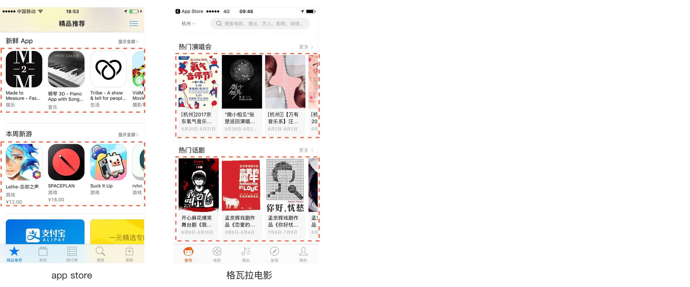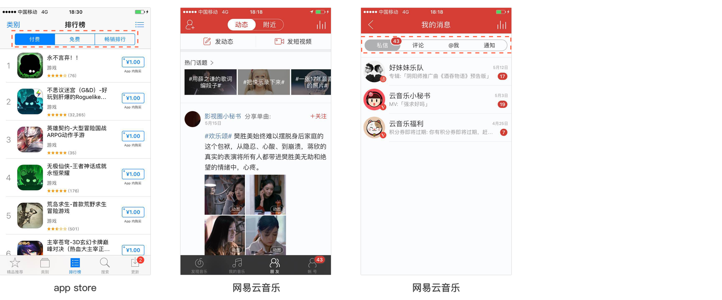 如下圖所示,iOS的app store與網(wǎng)易云音樂使用了分段式導航。