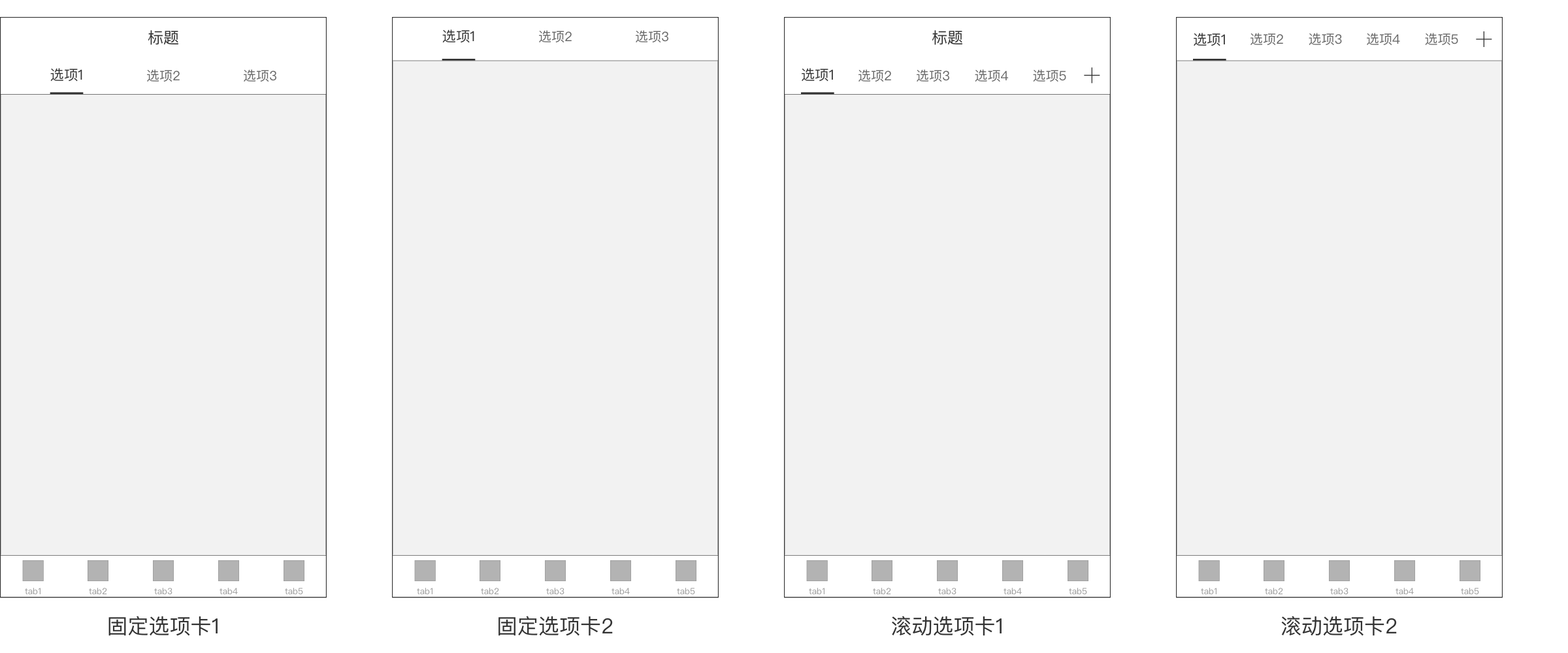 如下圖所示,固定選項卡的位置一般放置在屏幕頂部(導航欄或?qū)Ш綑谙路?