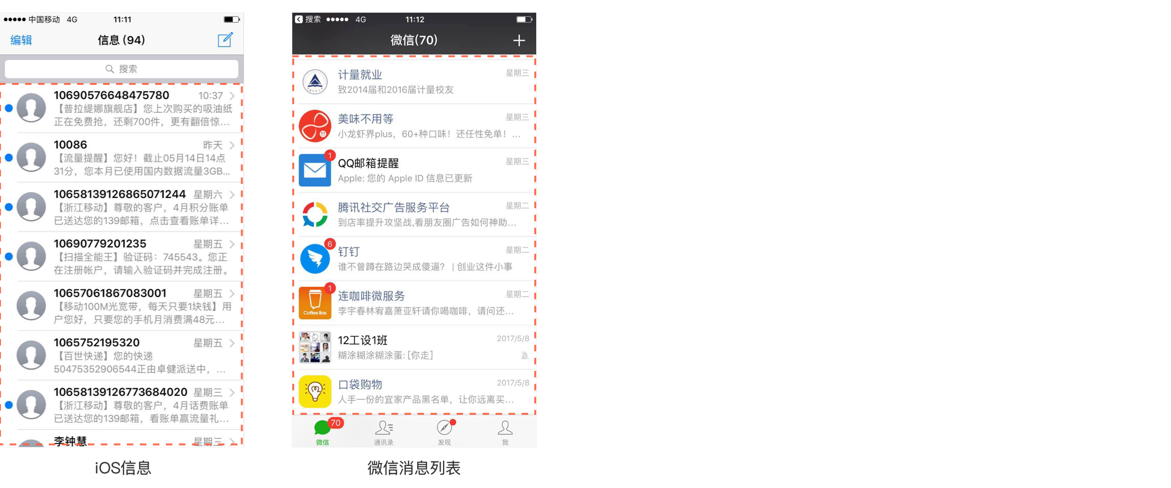 1.3列表式導航作為次級導航展示種類單一的信息,如iOS信息應用,微信的消息列表等。