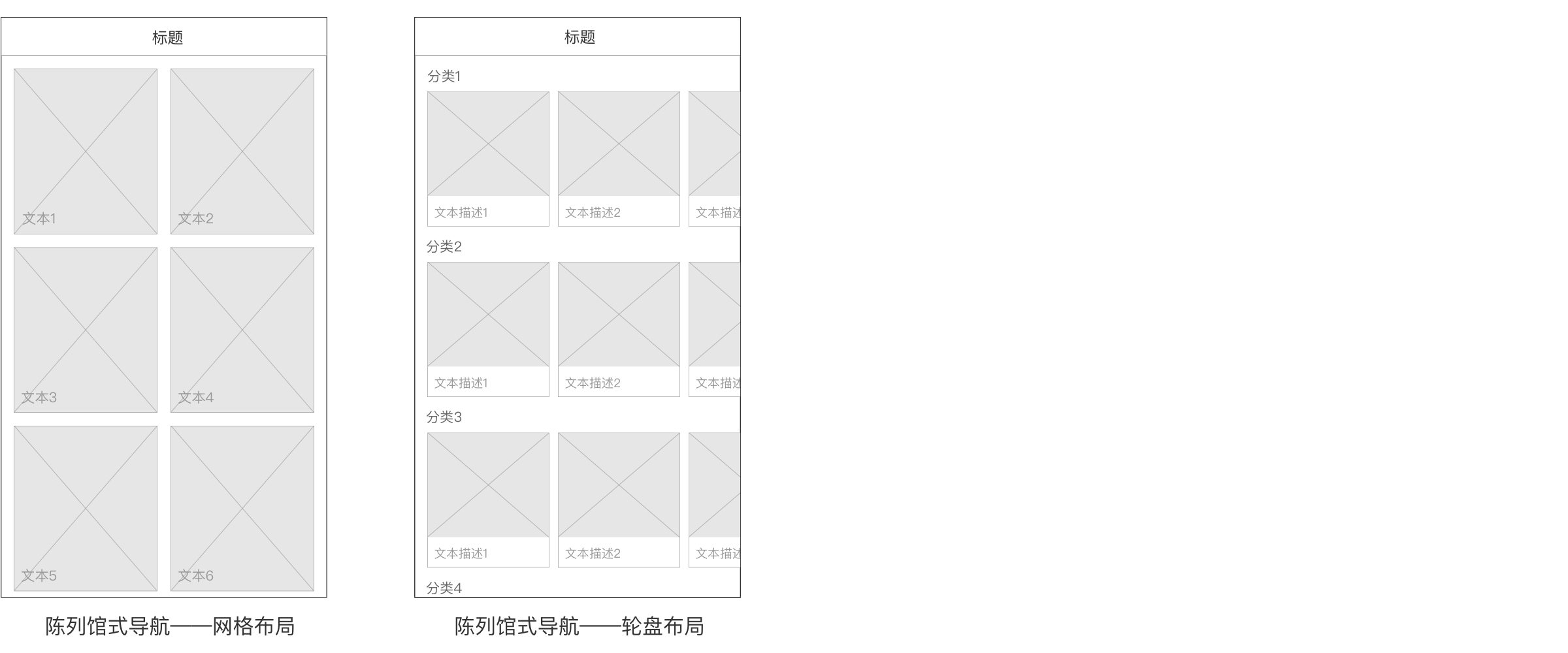 內(nèi)容界面結(jié)構主要表現(xiàn)有:列表式導航、宮格式導航、陳列館式導航、卡片式導航等 。內(nèi)容界面結(jié)構導航,顧名思義,是針對內(nèi)容界面的呈現(xiàn)、布局所整理出來的導航設計模式。大多用于次級導航,有少數(shù)情況會用于主導航。