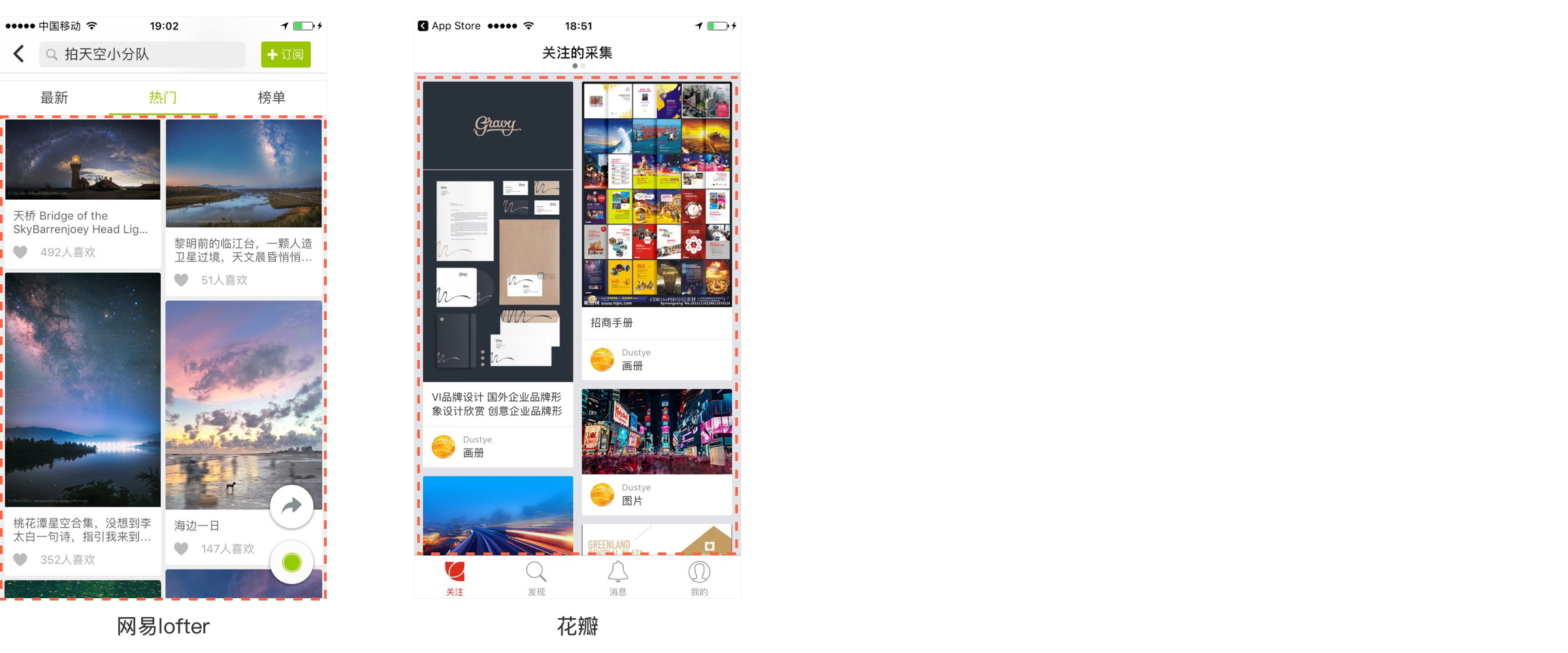 3.3瀑布流網(wǎng)格布局,瀑布狀的上下布局,引導用戶的視覺方向,體驗流暢,吸引用戶瀏覽并沉浸其中。