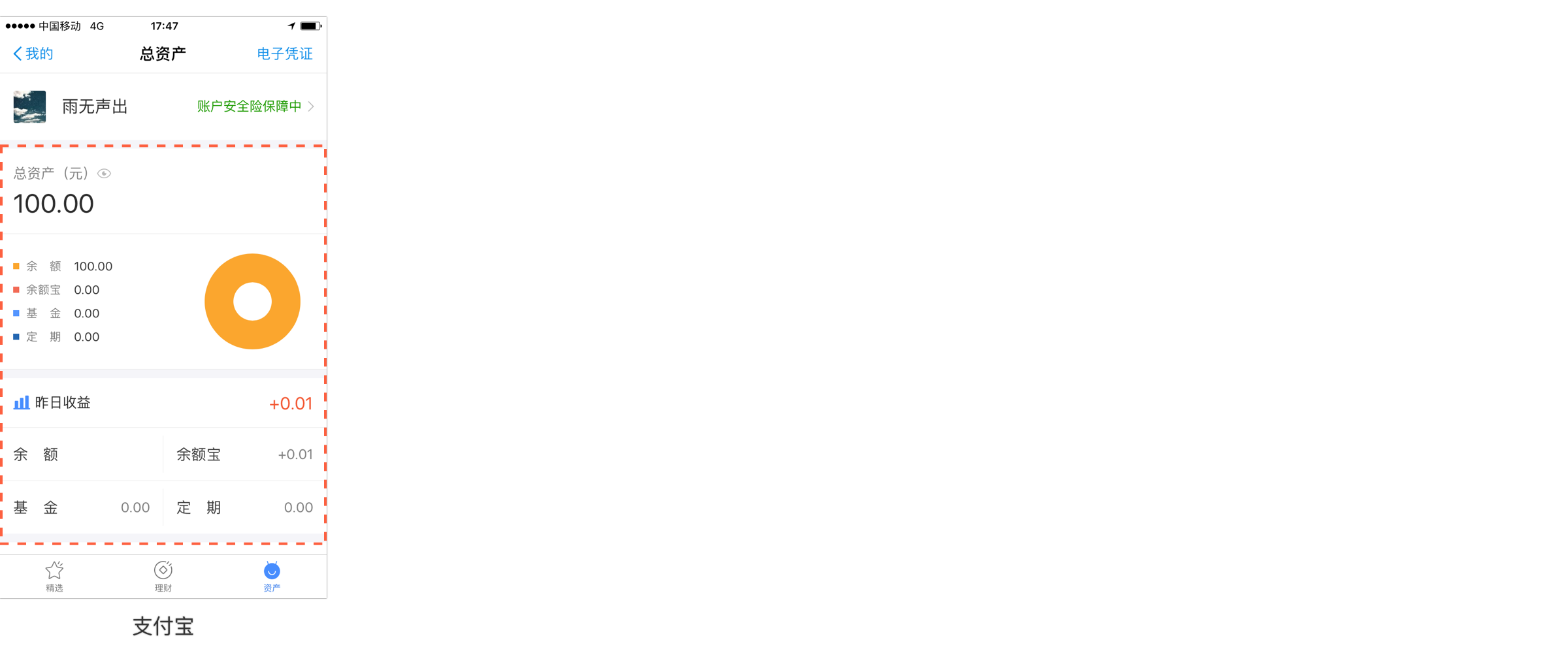 如下圖所示,支付寶的資產(chǎn)管理使用了儀表盤式導航。