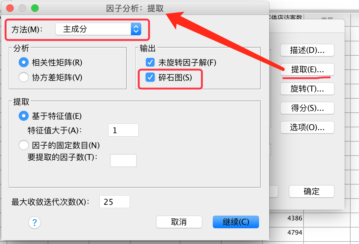 方法選擇“主成分”,這是最常用的提取因子的方法;