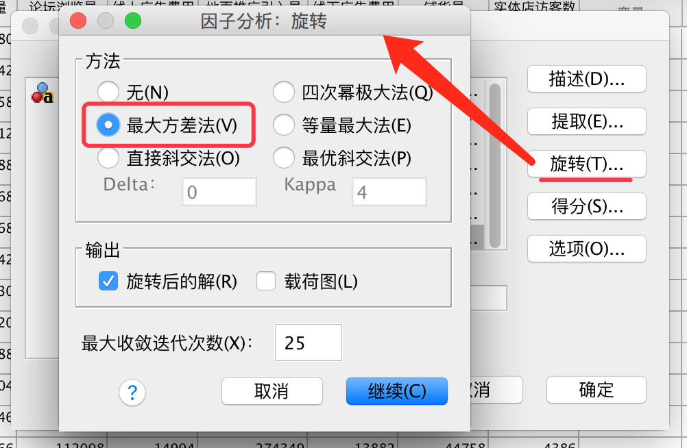 選擇“大方差法”,用于更好的解釋因子所包含的意義。