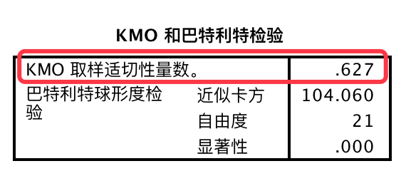 該結果主要用來檢驗數據是否適合因子分析,主要參考KMO統計量即可。