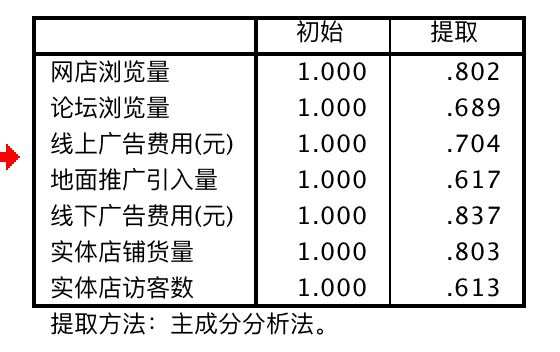 這個結果是“變量共同度”,顯示了原始變量能被提取的因子解釋的程度。