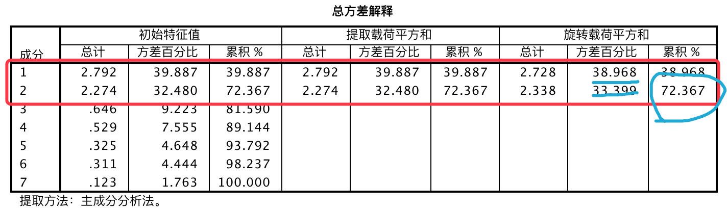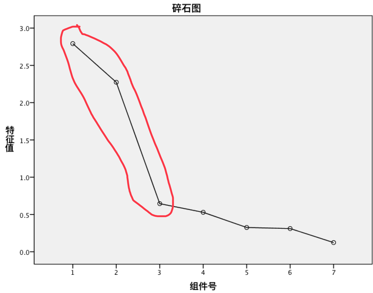 該圖是“總方差解釋”,顯示了通過分析所提起的因子數量,以及所提取的因子對所有變量的累計方差貢獻率。