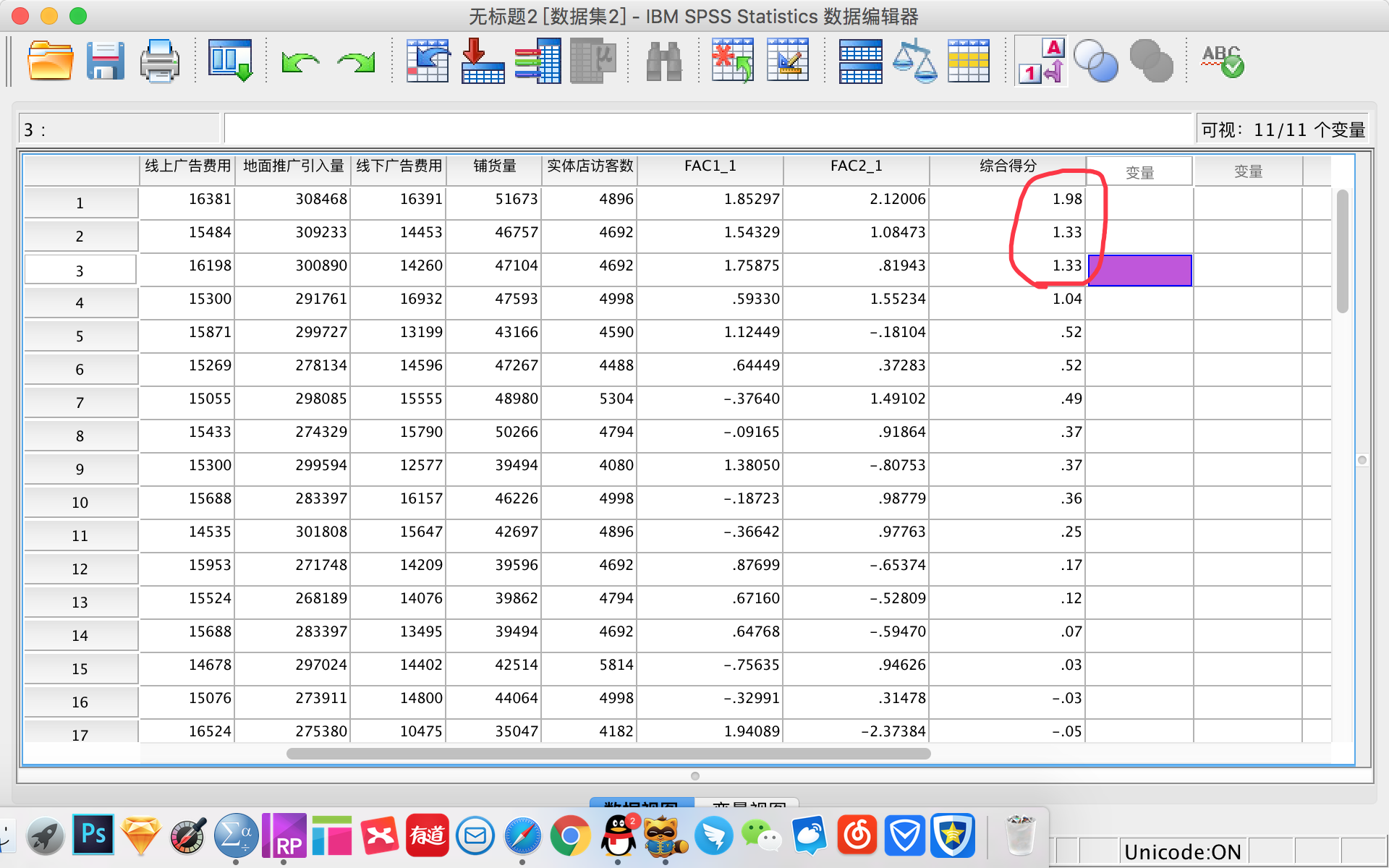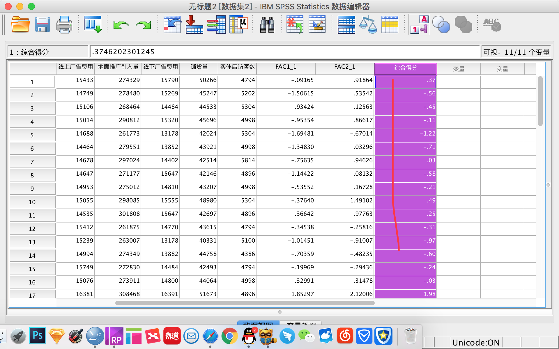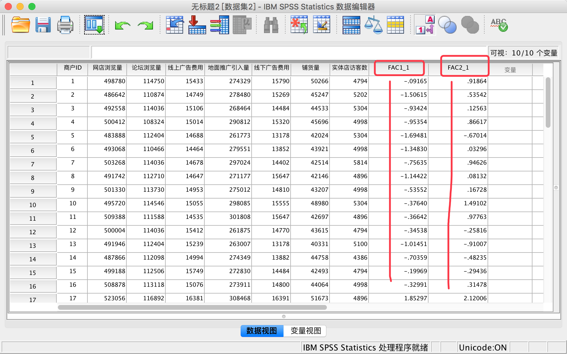 新生成了兩個變量就是每個商戶在兩個因子上的得分:第一個因子的得分,第二個因子的得分。